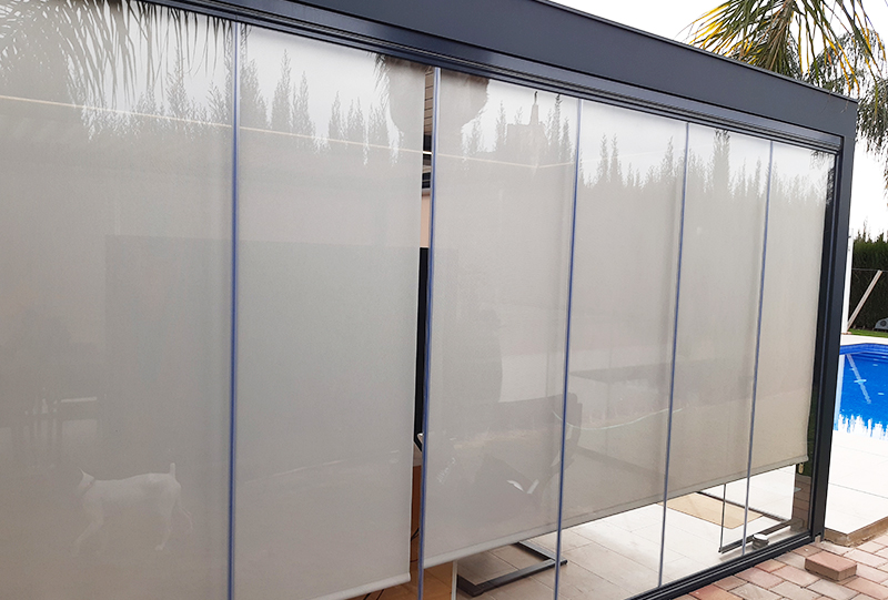 También puedes aislar tu pérgola con screens de lona personalizada en multitud de colores y materiales, además se puede instalar motor retráctil para cubrir tu pérgola automáticamente desde tu mando o smartphone.