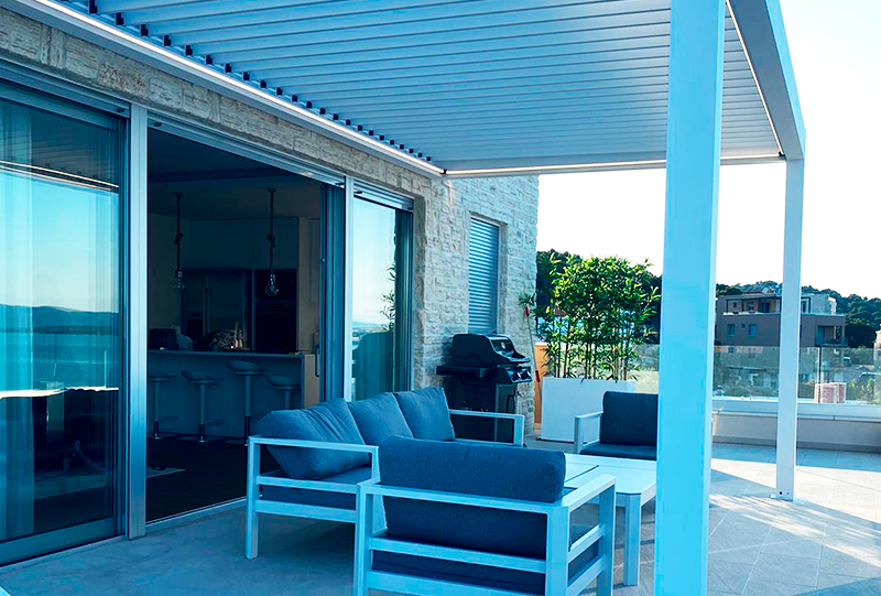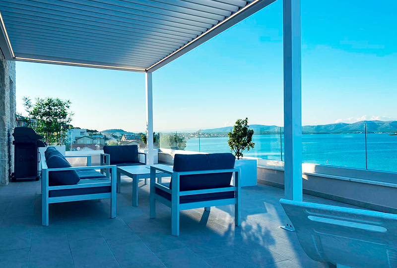 Instalación del modelo Moraira con luces LED blancas, en las islas del mar Adriático.